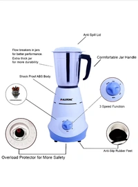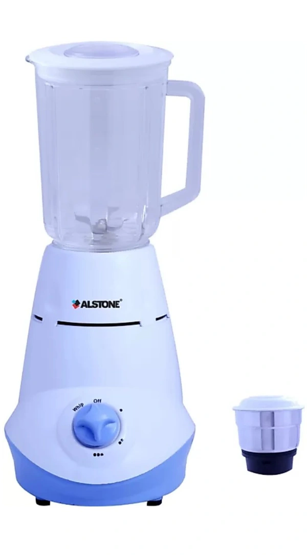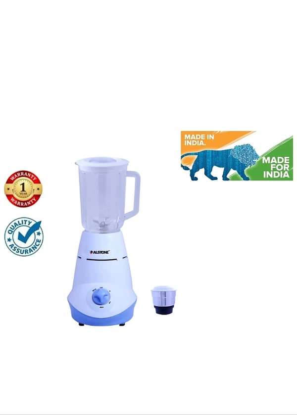 Model Name: ALSTONE POPULER (AMG-BMH-2P), 500-Watt, 2 Jar Mixer Grinder with 1-year Warranty. Power Requirement-220 Volts. (1). About Product-: To Make the Cooking Time Hassle-Free and Fun, you can bring Home the Kitchen mate ALSTONE Mixer Grinder food processor is the perfect Kitchen Companion fast and efficient. You can also grind and blend to perfection using the ALSTONE food processor and churn out dishes, just as good as ones at your favourite restaurants. (2). Design and functions: The ALSTONE mixer grinder has a compact make owing to it can be conveniently stored on the kitchen top or kitchen self without any hassle. The main unit has a sporting an elegant body design which is shockproof and fine ABS plastic body that is rust-proof and sure to last for long time. This mixer has an ergonomic design and comes with easy to use knobs and buttons. It has high class 500 watts 100% copper motor, which makes quick work of anything that goes into the jar for both dry and wet grindings. This mixer comes with high class food graded 1 stainless steel & 1 Polycarbonate (Poly) jars for grinding and blending with the help of highly sharp and durable multifunctional stainless-steel blades, which makes grinding and mixing more effective. With this you can conveniently take care of number of tasks like chopping, mixing, grinding and more without any hassle. You can also use it for make mango and banana shakes as well as other fruits liquid shakes and whole verity of chutney. (3). Safety and Power: Automatic switch off features and motor overload protection, which programmed to prevent the mixer from getting damaged. Anti-skid rubber feet, which provide good grip on any kind of kitchen top counter surfacekeeping it sturdy and rigidwhile performing all grinding functions and reducing vibrations. (4). In the Box: Main unit, Jars. User manual and moreover 1-year warranty card as your billing invoice. But in warranty only manufacturing and technical defects will be covered like motor. Not cover any physical damages (wear and tea