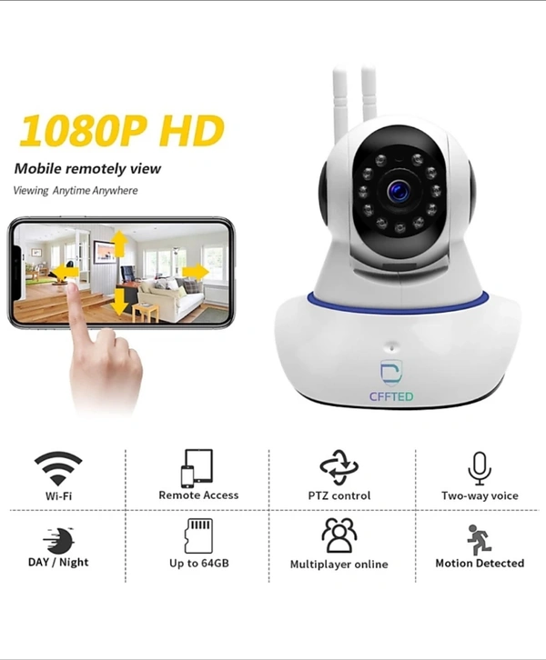 CFFTED Double Antenna Auto- RotatingNight Vision Mobile HD CCTV WifiCamera 720P with Audio Wifi SmartNet Camera Live Streaming Video(Android/IOS) Security Camera (2Channel)