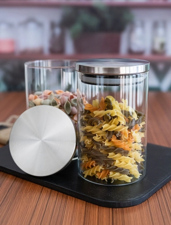 Keep dry foods such as biscuits, cookies and other tea-time snacks neatly stored away and hygienically safe with our beautiful jar set created from clear borosilicate glass. Made with airtight lids to keep food fresh, these storage jars is a stylish way to store food, perishables and cooking ingredients.