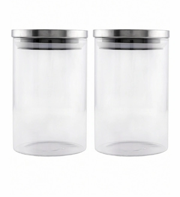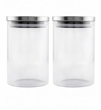 GOODHOMES Set of 2 Transparent Borosilicate Airtight Jars with Metal Lid