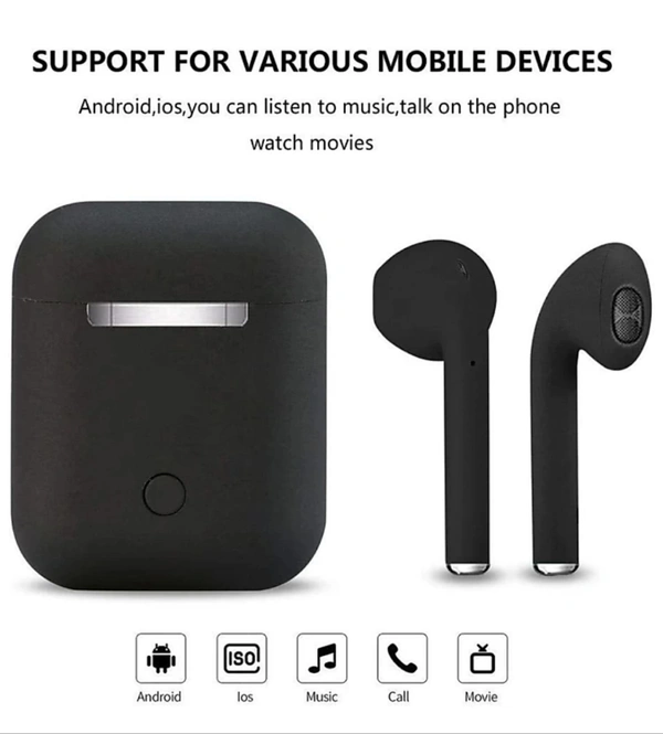 i12 Wireless Bluetooth Earphone Portable Bluetooth Headset Bluetooth Headset (Black, In the Ear)