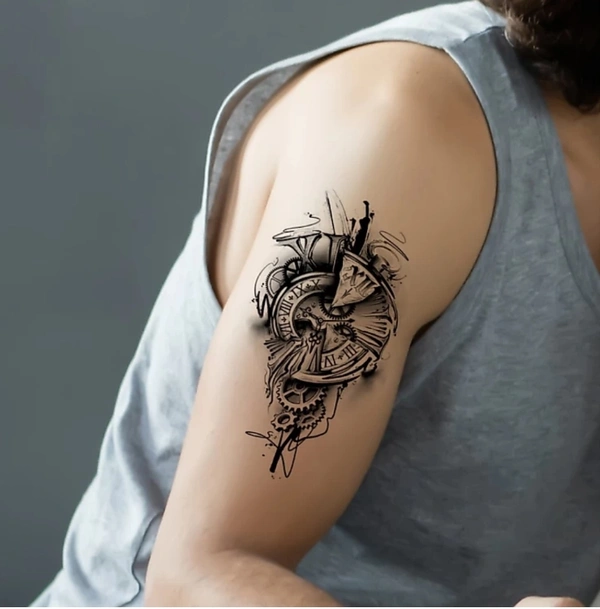 komstec Compass Clock TattooWaterproof Sticker For Men andWomen Temporary Body Tattoo(Compass Clock Tattoo)