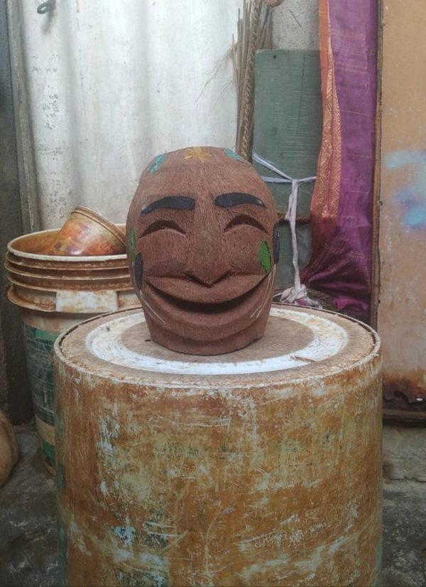Monkey Carving On Coconut Husk Handmade idol Statue Showpiece