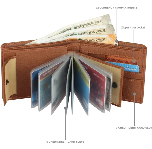 SAMTROHMen Tan Artificial Leather Wallet - Mini (8 Card Slots)