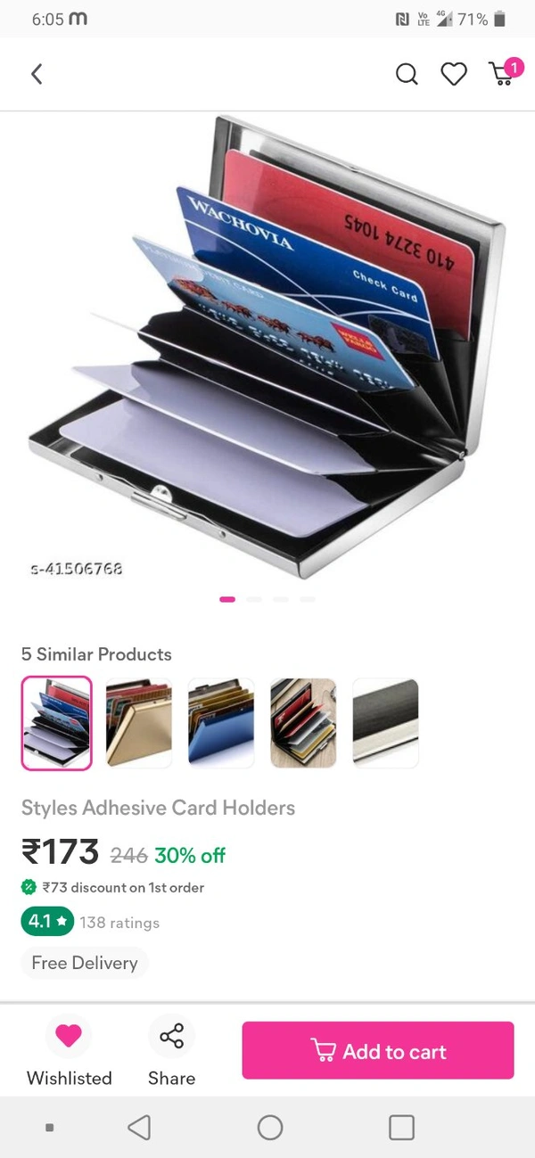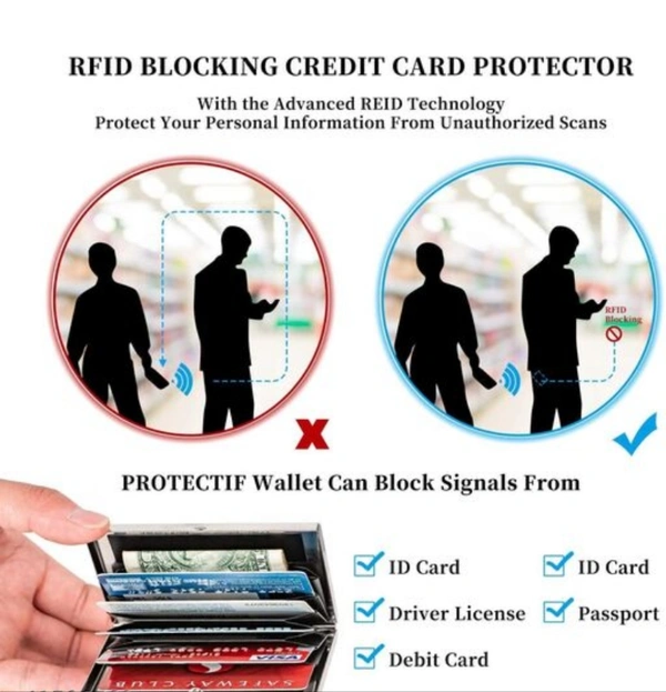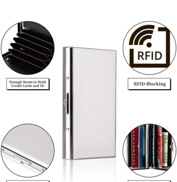 Silver Stainless Steel Front Pocket 6-Slot Credit/Debit RFID Blocking 6 Card Holder (Set of 1, Black)