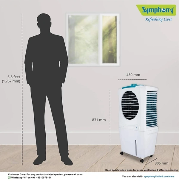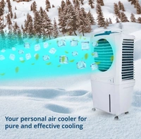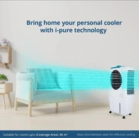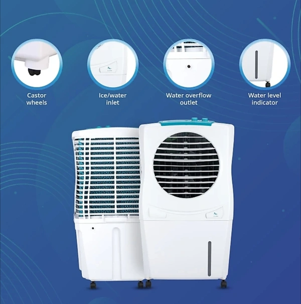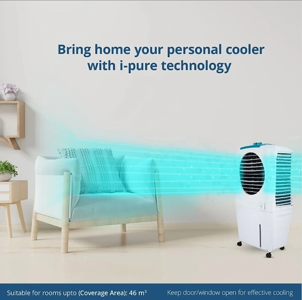Personal cooler comprising of a powerful fan with 3-speed motor, 3-side honeycomb cooling pads provide enhanced cooling, Dura-pump technology ensures for long life of the pump, Cool flow dispenser provides channelized water distribution for superior cooling, Automatic vertical swing provides equal air flow distribution, Whisper-quiet performance for a sound sleep, Strong wheels for easy mobility of the cooler.