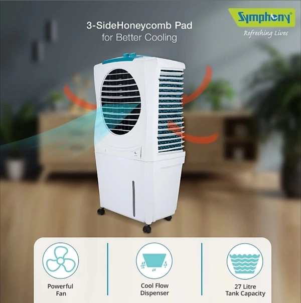 Symphony 27 L Room/Personal Air Cooler (White, Blue, Ice Cube 27)